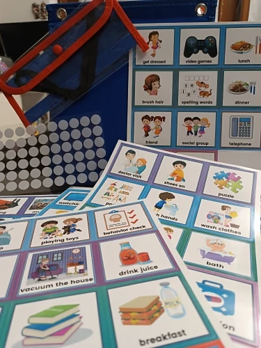 A clear way to bring structure and understanding to daily routines. The Visual Learning Routine Chart uses picture cards and simple words to help children recognise activities and follow what comes next. With 70 visual cards and a flexible design, it supports communication, learning, and consistency. It can be hung on the wall or used as a standing board for easy interaction.